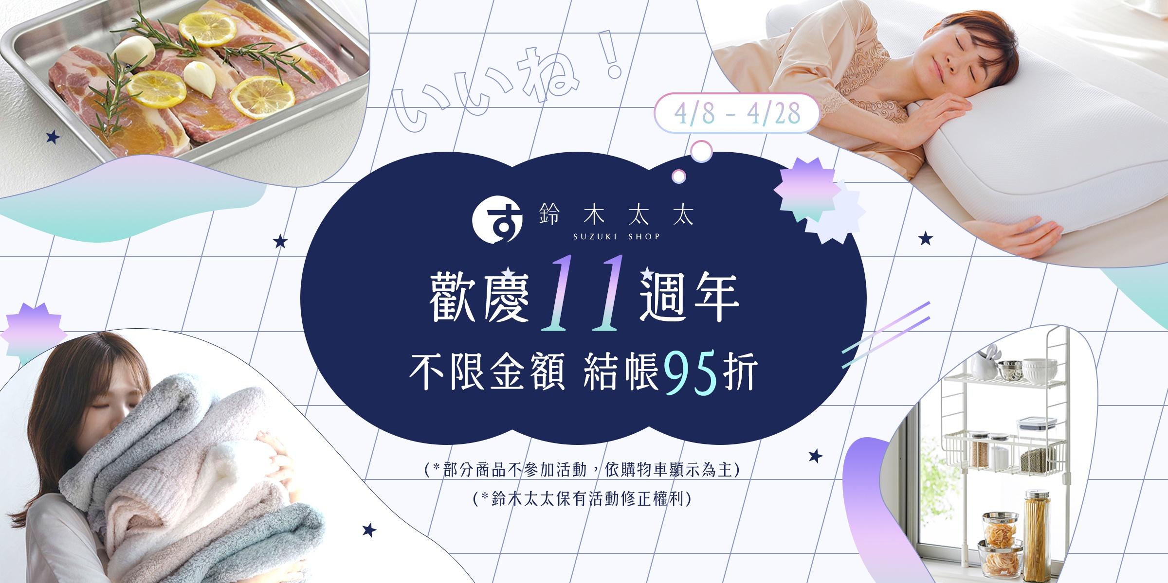 4/8-4/28 歡慶11週年!不限金額結帳95折
