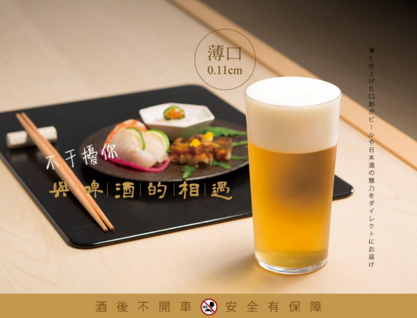 酒杯採用東洋佐佐木公司獨家開發的「鈉鈣玻璃」製成,同時擁有堅固和晶透的特性,耐磨又不容易破。將啤酒倒入杯中的過程,看著不斷增高的泡沫,視覺、味覺都享受。可用洗碗機清洗的材質,冬天喝完也不怕洗杯子手冰冰,通通交給洗碗機處理。
