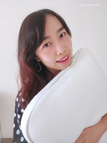 大家可以看到我的脖子跟身體是平行的,沒有因為枕頭凹陷掉下去,