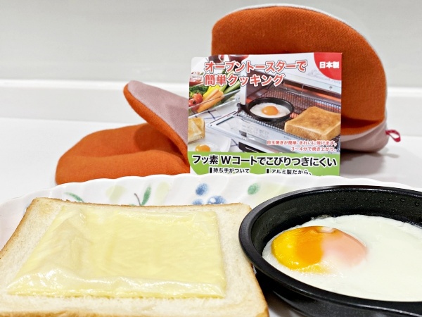 烤盤本身耐熱溫度240度,大家在調整烹調溫度時記得多加留意。若想吃全熟的荷包蛋,建議烤個五分鐘左右。加熱時間主要還是依自己平時喜歡吃的熟度和食材種類去斟酌。這次的蛋黃有點偏離軌道,沒在正中心有點小小可惜XD