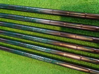 【値下げしました!】アイアン6本セット★細かい傷が見られますが、中古としては状態良好です。全番手、マスダグリップのスリックフィット装着です。※数値は5Iのものです(ロフト角・ライ角はカタログ値)。 |