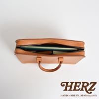 採用HERZ原創Latigo硬牛皮革製作,雙開拉鍊設計,物品拿取便利,可放平板、A4書本、A4資料夾、A5記事本等物品,適合商務使用。