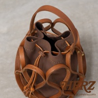 圓柱狀包身可收納 340ml 水瓶、短夾與智慧型手機,皮革編織縫隙處亦可隨手放置手帕等小物。