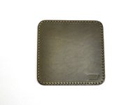 職人手作皮革印章墊板,方形,深橄欖綠色,邊緣縫線為淺褐色,右下角有壓印的品牌標誌。
