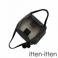 itten-itten 品牌名稱標誌,下方為一個灰褐色皮革托特包的特寫,展現其內部結構與材質紋理