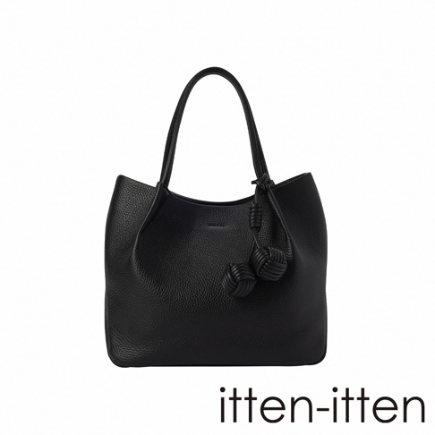 itten-itten 黑色義大利皮革點結吊飾中型托特包