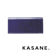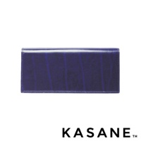 KASANE 品牌午夜藍 Rugato 皮革長夾,帶有條紋紋理,側面縫線清晰可見。