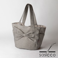 外觀刺子織大蝴蝶結裝飾,搭配內部水玉圖案與多收納口袋設計,美觀兼具收納機能。工作、出門逛街皆適合。