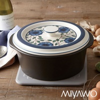 IH系列7號耐溫差洋風陶土湯鍋1.7L (藍彩富貴菊)