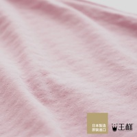 粉色細緻紋理的織品,材質柔軟,呈現波浪狀的織紋,右下角有「日本製造 原裝進口」字樣和「王樣」品牌標誌。