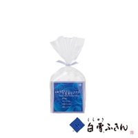 白雪肌洗臉巾,印有日文「白雪ふきん」字樣及一個藍色菱形圖案。