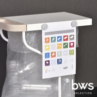 - 材質:本體 - 鋼 (環氧樹脂粉末塗層)、手柄 - 聚丙烯、袋子支架 - 不銹鋼、緩衝腳墊 - 矽橡膠