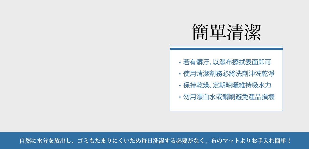 使用珪藻土地墊的優點,無非是這兩點「超吸水」、「好清潔」,傳統毛地墊有一個非常麻煩地方就是「清潔」。如果你現在還在用傳統毛地墊,可以回想看看上次清潔它是什麼時候?以我個人過去的經驗大概2~3個月,想到才會去清一下,而且重點是清潔的時候很麻煩,因為不想跟一般的衣物一起洗,單獨洗感覺又有點浪費水電...