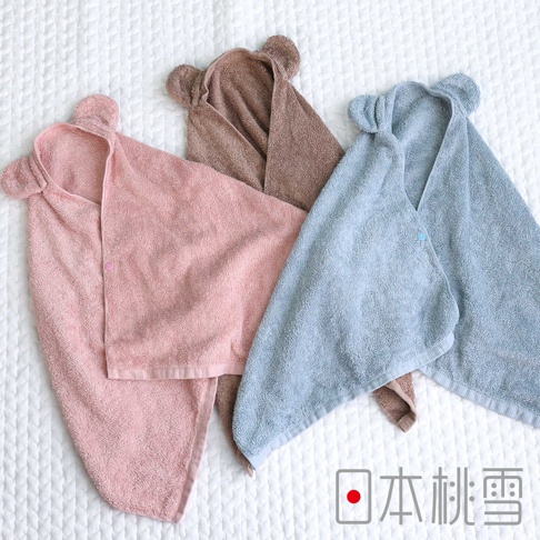 日本桃雪可愛熊耳連帽飯店大毛巾,讓孩子一秒變可愛