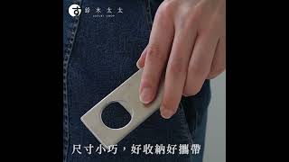使用於打開酒瓶、果汁瓶蓋,呈現金屬製物的質樸光澤感。 簡約設計帶圓形孔洞,輕易打開瓶蓋。 一體成型好收納,不鏽鋼材質耐用好清洗。