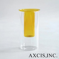 AXCIS PINO 雙層可拆玻璃花瓶-高款,外層為透明玻璃,內層為黃色玻璃,簡約而有設計感。