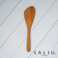 YAMASAKURA 山櫻木斜口鍋鏟,原木色,材質為天然山櫻木,鍋鏟頭呈現斜切面,表面有「SALIU JAPAN」品牌烙印。