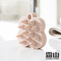 淺粉色蝴蝶造型矽膠頭皮按摩洗髮梳,佈滿多個圓潤的錐形按摩顆粒,頂部有掛孔設計。